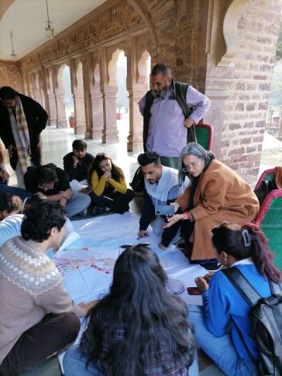 M.Arch. students from the School of Planning and Architecture in Delhi spent two weeks in historic Kota in January mapping the Old City. They focussed on area between the Garh and Patan Pol (seen here in the background).